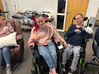 This week Matt requested we make flower crafts, so we did! We talked about florists and how they arrange flowers based on meaning, color, and event. Everyone got the opportunity to make their own arrangements. We also had a fun surprise pizza party courtesy of Frogger! It was super fun and we love her so much.
